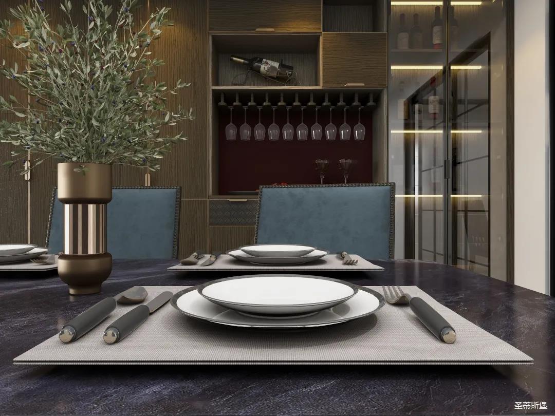 材質(zhì)的交替與光影的變換,具有濃濃的現(xiàn)代簡奢色彩。獨一無二的英倫爵士灰定制柜,由延邊鑲嵌的香檳金拉絲金屬分割,線條流暢且奢華,不僅代表著時尚,也崇尚了實木韻味。設(shè)計師將現(xiàn)代、實用、精致的藝術(shù)設(shè)計風格應(yīng)用其中,更是精致生活方式的藝術(shù)演繹。在平靜的空間中表現(xiàn)出獨特的藝術(shù)骨感,滿足我們對精致生活的精神追求。